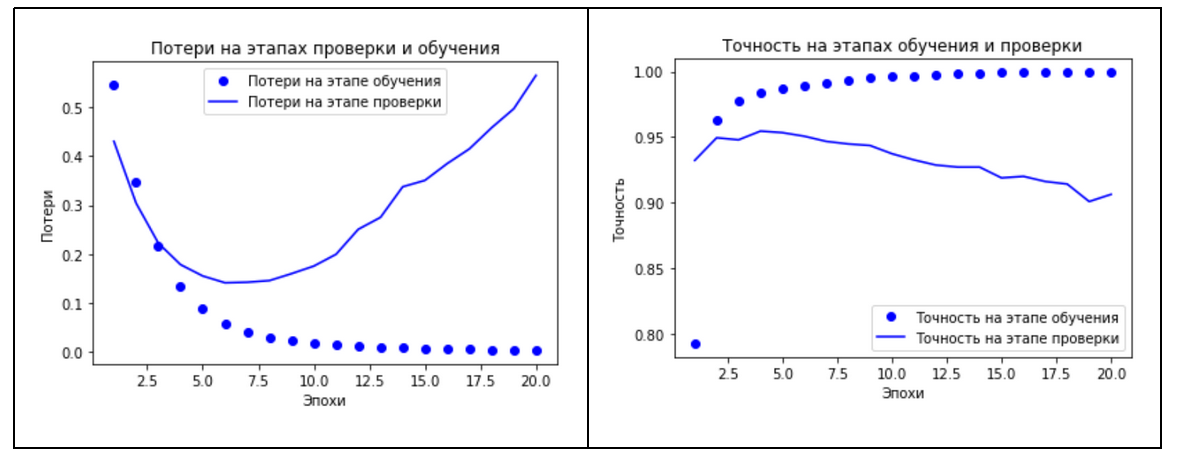 X_train‚ X_test‚ y_train‚ y_test = train_test_split(texts‚ labels‚ test_size=0․2‚ random_state=42)Обучение модели